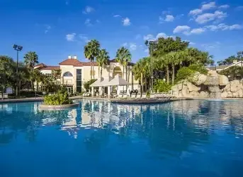 Off Palm Parkway, we’re within three miles of the Walt Disney World® Resort, SeaWorld, and Aquatica Orlando. Universal Orlando and Universal Epic Universe are seven miles away. We offer outdoor pools, a water slide, a kids’ activity center, tennis, basketball, and more. We have a parking garage, a grab-and-go market, and balconies with fireworks views.