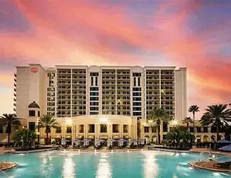 Set on 62 acres of family-fun, our resort ranks as one of the best hotels near Walt Disney World® Resort. Designed to be the ideal escape, guests enjoy the tranquility of Blue Harmony Spa and the relaxation of the surrounding area of Bonnet Creek. Your stay includes a picturesque 10-acre lake surrounded by walking paths, five pools, two lazy rivers, miniature golf, and much more. As a Walt Disney World® Gateway Hotel, we offer scheduled shuttle transportation and advance purchase Theme Park tickets.