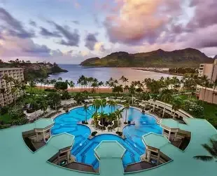 Plan your island getaway to Marriott's Kaua'i Beach Club, a vacation ownership resort just steps from Kalapaki Beach. This oceanfront Lihue resort features guest rooms, parlors, and condo-style villa vacation rentals with a gourmet center and sweeping ocean or garden views. Unwind in our 26,000-square-foot outdoor pool, soak in a whirlpool spa, or enjoy the children's pool. Stay active with a workout in the fitness center or try island activities like snorkeling, surfing, or scuba. After a day exploring Kauai, relax with a massage at our day spa or dine at beachfront restaurants before retreating to your vacation rental sanctuary.