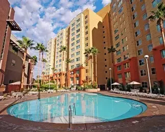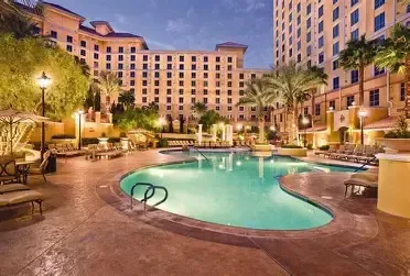 This Mediterranean-style, mega resort has three towers that allow for beautiful mountain, dramatic city and charming courtyard view of our lagoon-style pool. You can bask on the spacious sundeck, work out in one of two fitness centers, or even enjoy a relaxing massage. The resort also offers a sauna, 4 outdoor hot tubs, Internet access and an activities center offering a variety of recreation games, videos and activities. There is no casino on site which makes Club Wyndham Grand Desert the perfect resort for families looking to savor some family-time fun, or non-gambling couples who are more interested in the variety of spectacular shows Las Vegas as to offer.