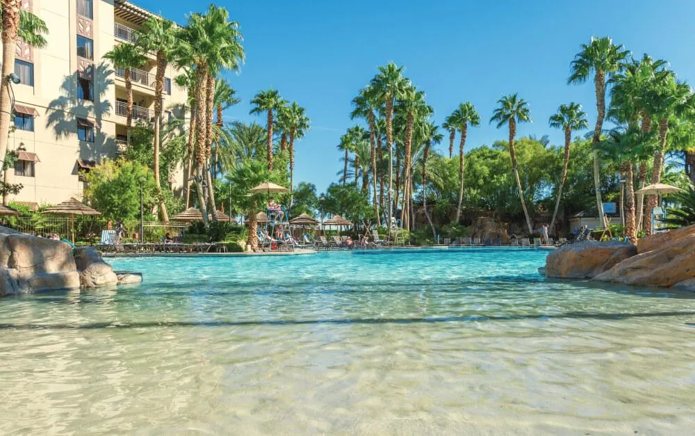 The Boulevard, a Hilton Grand Vacations Club is a family-inspired Las Vegas timeshare resort located on the north end of the Las Vegas Strip, known for its Desert Deco design and large multi- bedroom suites. Make yourself comfortable in a studio with a kitchenette, or maximize your space with a 3-bedroom suite complete with a full kitchen, living and dining areas, and Jacuzzi tub. No matter which accommodations you choose, you’ll always wake up to a range of special amenities, including the world-renowned eforea Spa located on property and a private resort-style pool area.