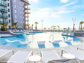 With three complexes, two towers and a huge selection of aquatic amenities and activities, these spacious one-, two- and three-bedroom resort suites comfortably sleep four to ten guests in 581 to 1,786 square feet. Suites feature separate rooms, a full kitchen, living/dining areas and the convenience of a washer/dryer. Amenities include: seven pools, a children's pool, two lazy rivers, eleven hot tubs, beach access, a fitness center, laundry facilities, a game room, playground, and restaurant.